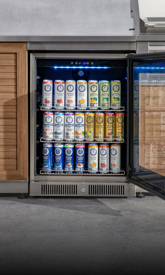 Our pre-configured outdoor kitchens include countertops, appliances, fridges, and stacked stone - with customizable finishes for a personalized touch.
